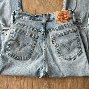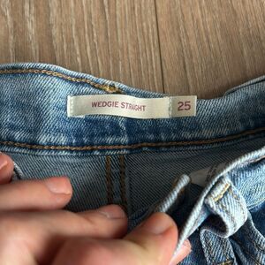 LEVIS WEDGIE STRAIGHT DISTRESSED KNEES HIGH RISE SIZE 25