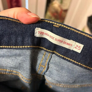 Pre owned excellent condition. Worn once or twice. WOMENS size 25 high rise super skinny jeans. These have a little bit of stretch.