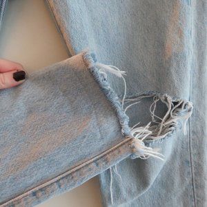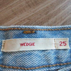 LEVI'S Wedgie Button Fly Light Wash Distressed Straight Leg Jeans - Size 27
