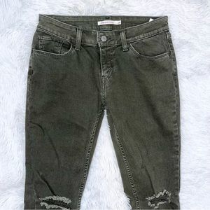 Women’s LEVI’S 535 Super Skinny Distressed Green Denim Jeans. Zipper fly with button closure. 5 pocket styling. EUC
