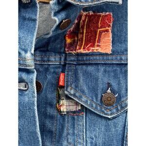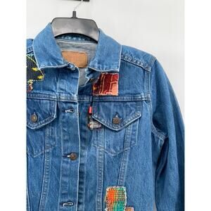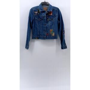 LEVI'S Women's Denim Blue Patchwork Button-Up Long Sleeve Trucker Jean Jacket SZ S