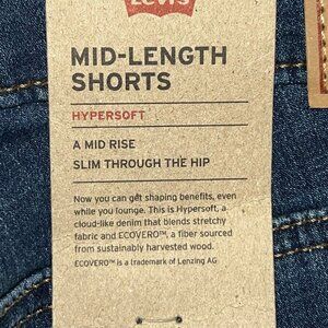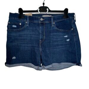 LEVI'S Women's Denim Shorts Mid Length Hyper Soft Dark Wash Plus Size 16/W33 New
