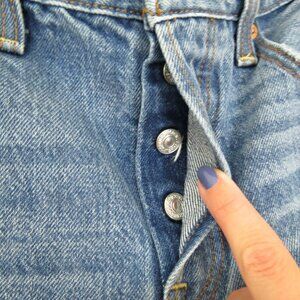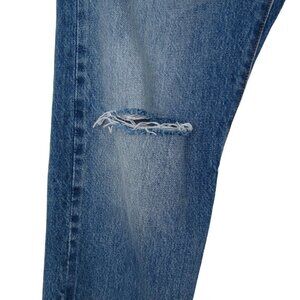 LEVI'S Women's Medium Blue Distressed Button Fly Wedgie Straight Jeans 26