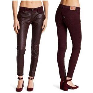 LEVI'S Womens Pants 535 Super Skinny Faux Leather Velvet Burgundy Midrise 26