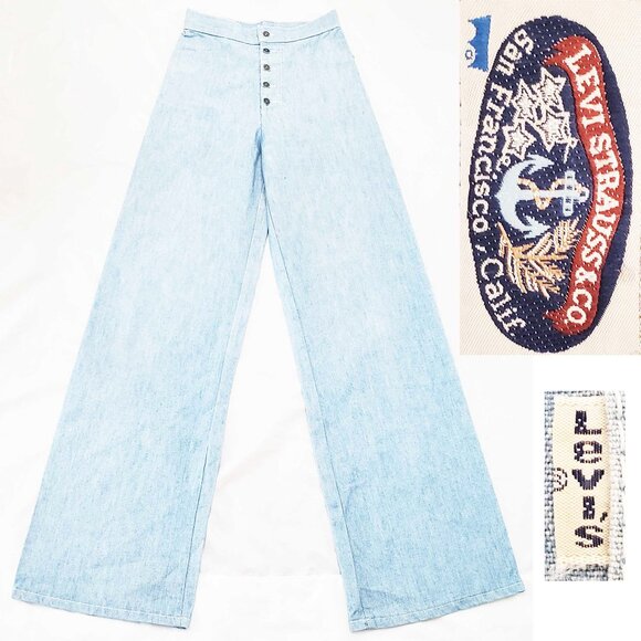 AMAZING VINTAGE 1970s Levi's HIgh Waist denim pants. Very rare San Francisco Sailor label.