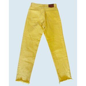 LEVI'S Yellow Button Fly High Waisted Straight Leg Raw Hem Jeans Sz 24