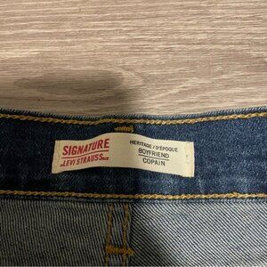 tags: denim jeans boyfriend casual cute dark wash blue Levis signature stratus comfortable daily wear cropped ankle