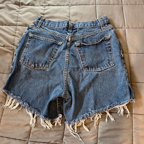 LOVED these shorts. Some signs of wear as pictured (fraying side seam, button hole has a slight rip) but none affect the look or functionality of these shorts. Size 28