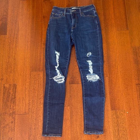 Size 26 (size 2) medium wash, high rise skinny jeans, distressed with rips💙