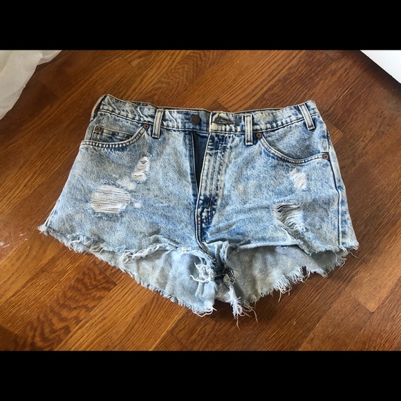 ripped light wash levi’s shorts