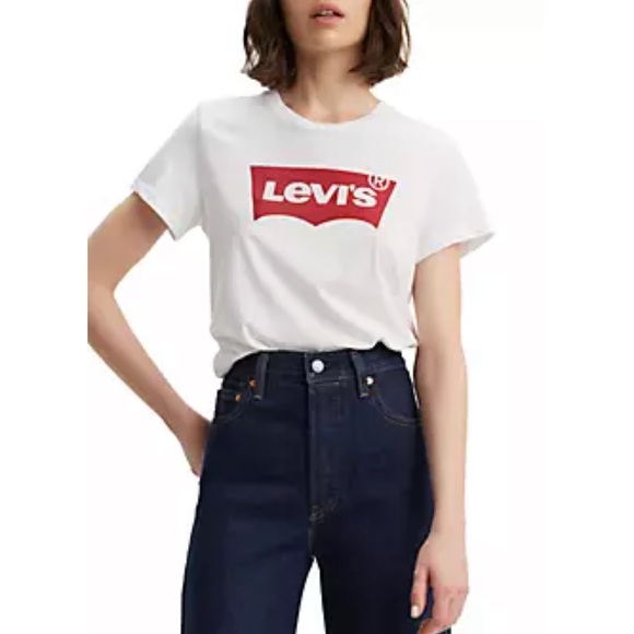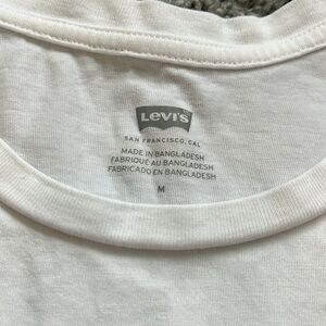 LEVIS white short sleeve tshirt. Never worn. New without tags. Size medium. Cotton. Features red Levi’s logo on the front and plain back.
