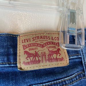 LEVI'S woman's size 28 mid length denim medium wash jorts jean shorts