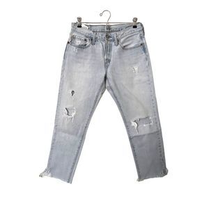 LEVI'S 501 Cropped Distressed Denim in Bowie Blue Sz 27