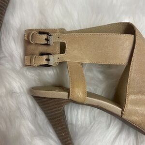 LEVITY Suede Soft Leather Eucalipto Tory Taupe Braided Crisscross Heels BIN 13