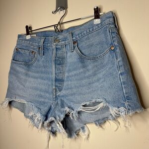 LEVI’s 501 Distressed Button Fly Rigid Denim Light Wash Summer Jean Shorts