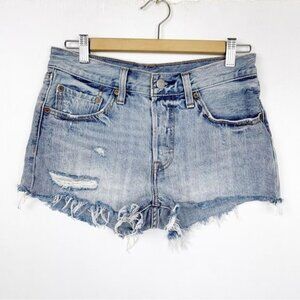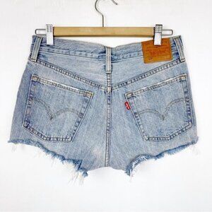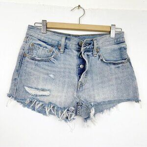 LEVI's 501 premium high waisted distressed shorts raw hem Waveline wash 26