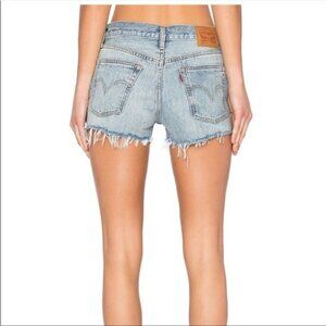 LEVI's 501 premium high waisted distressed shorts frayed raw hem in Waveline Size 26