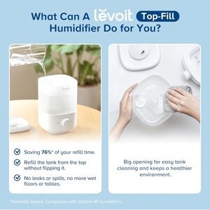 LEVOIT Top Fill Humidifier for Bedroom, 2.5L Tank for Large Room, Easy to Fill & Clean, 28dB Quiet Cool Mist Air Humidifier for Home Baby Nursery & Plants, Auto Shut-off and BPA-Free for Safety, 25H