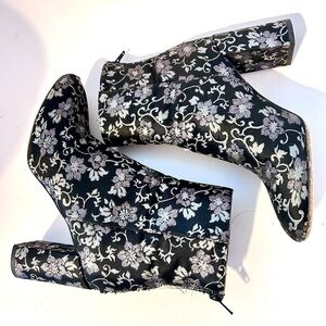 LEWIT 90s Y2K Lanzo Metallic Brocade Floral Ankle Boot Black Silver sz 8 Mobwife