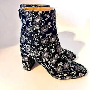 LEWIT Lanzo Bootie with Black, Silver and Lavender Metallic Brocade Floral 38.5 or us 7.5/8