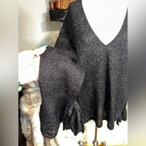 This is a beautiful Lewitt sweater made of angora and mohair with metallic gold, threading throughout to give it bling. The sleeves are long and have a tie at the wrist which accentuates the look! Retail for this sweater was $250. Get it here for a fraction of the cost.!