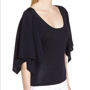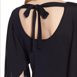 LEWIT Sweater Womens Size XL Tie Open Back Pullover Navy Blue Flutter Sleeve