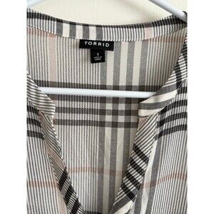 LEXIE - GREY PLAID CHIFFON HI-LO BABYDOLL TUNIC SHEER SIZE 1 Torrid