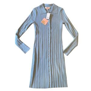 Leyden sweater dress, ribbed button front dress, knit collared dress, dusty blue knit dress, new with tags, stretchy sweater dress, fall transition dress, trendy TikTok dress