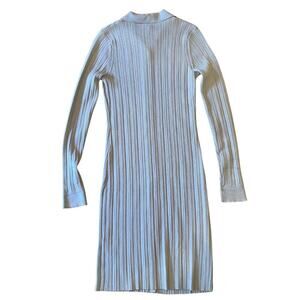 LEYDEN Blue Ribbed Knit Sweater Dress Size M Long Sleeve Collared Button Front