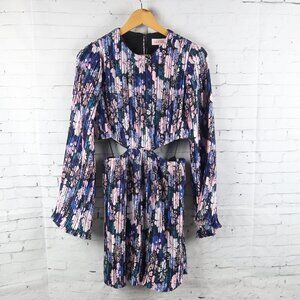 LEYDEN PINK BLUE BLACK FLORAL ROUND NECK LONG SLEEVE OPEN MIDRIF MINI DRESS XS