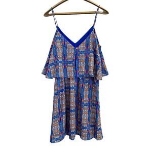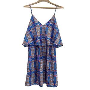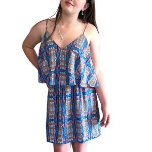 LEYDEN Womens DRESS Spaghetti Strap Tiered Bodice Lined V-Neck Blue White Gold - Made In USA - New Condition