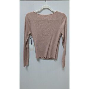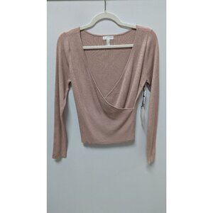 LEiTH Light Pink Ribbed Knit Cropped Sweater. Size Medium. New with tags. It has long sleeves, a ribbed knit material, and a faux-wrap front.