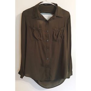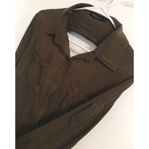 Olive green military surplus shirt, brand is Kiwi Tucker. Open back. Worn once.