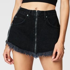 LF Carmar Black Denim Beatrice Zip Front Skirt with Reflective Sise Zipper