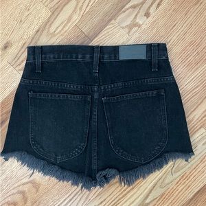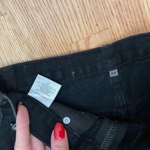 Beatrice skirt in overdye Black is a relaxed fit modified A-line slim fit, non-stretch, high rise skirt with zipper front and reflective side zipper. This short skirt is designed to sit at the smallest part of the waist.