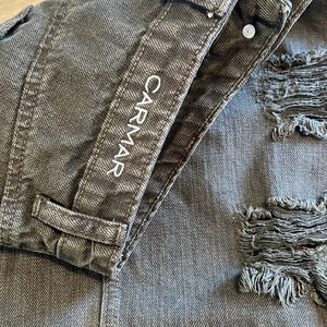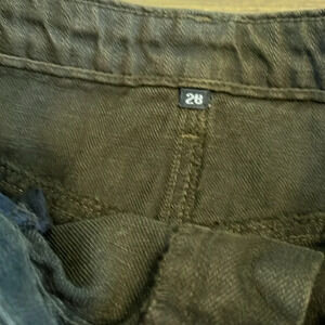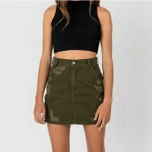LF Carmar Skirt Olive Green Denim Distressed Mini Skirt Size 28 Edgy Rocker Goth