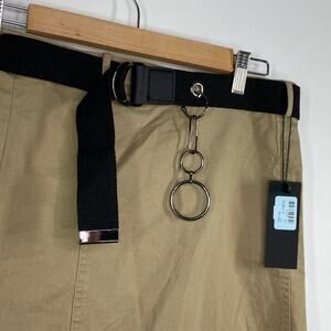 Taupe khaki black cotton blend belted mini skirt. Belted waist, mini length, belt loops. $154 retail.