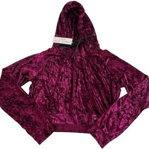LF Emma & Sam Hoodie Women Small Red Velvet Soft Crop Knit Pullover Sweater