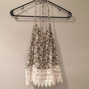 Super cute open back and lace trimmed top, only worn a few times!
