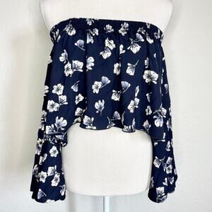 LF Love Navy Floral Bardot Flutter Top Sz S New