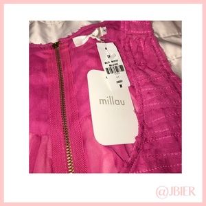 LF Magenta Chiffon Top features v-neckline, textured detail, zip at the back, and a high-low design. Style with American Apparel White Button Up Denim Shorts and BCBGeneration Funky White Sandals for a summer. beachy look. Excellent condition.