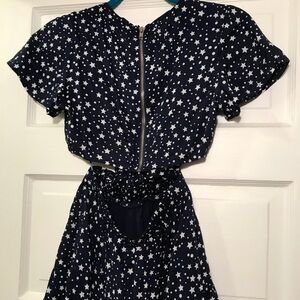 This romper still has the tags on it and has never been worn!! It’s super trendy and perfect for the summer! —was never sold. Perfect for MEMORIAL DAY ❤️🤍💙