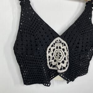 LF Native Rose Black Cream Crochet Tank Top Women's Size Small/Medium S/M NWT