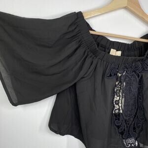LF Native Rose Kori Black Off The Shoulder Woven Crop Top Women's Size 8 NWT