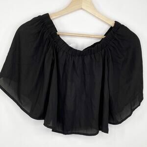 Kori black off the shoulder woven crop top. Elastic neckline, wide sleeves, embroidery detail. $128 original retail.