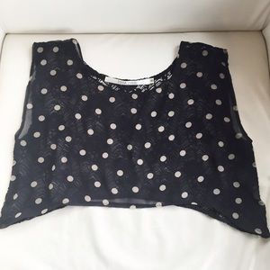 Sheer black crop top with cream colored polka dots. Lacey on the back. Worn once.
