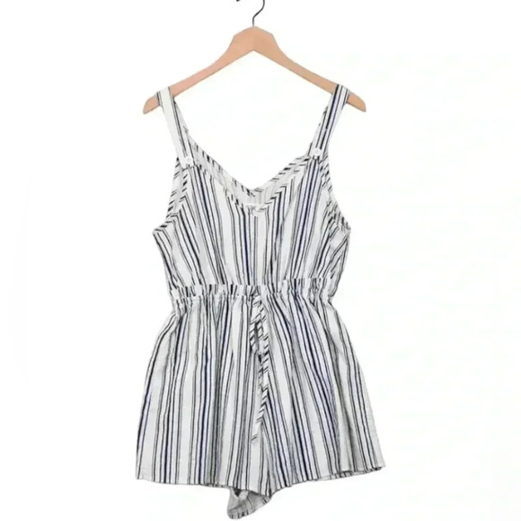 LF Seek the Label Blue & White Striped Paper-bag Waist Romper