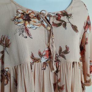 NWT peach floral babydoll top with cut-out back in size medium by Seek the Label/LF