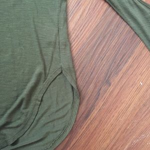 Olive green, long sleeve, shirt by Emma & Sam from the store LF, with elbow cut outs and "notched" split sides at the bottom. Worn only ONCE and in great condition!! Very cute and comfortable!!