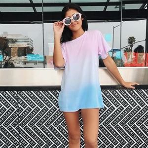 LF Spray Dip Dye Oversized Tee. Pink/White/Blue. Size small. Emma & Sam is sold at LF. 100% Cotton. Has some marks due the dying process but seem washable (most shown in pictures, some are not shown but seem washable- more towards top and ends) APPROX measurements: 17" bust laying flat, 24" long. Fabric feels like pilling, is not. Never worn. Retail price $108. Pair it by itself or with shorts/jeans underneath.